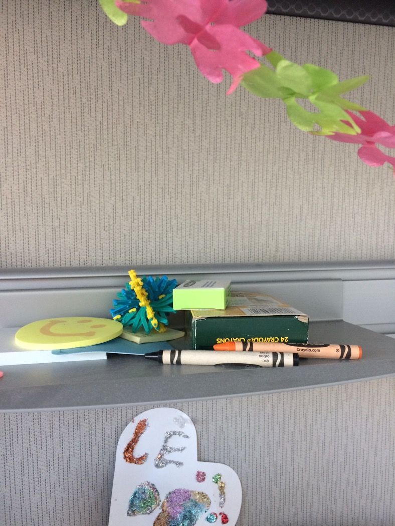 I love crayons. Here’s a picture of the shelf above my desk: