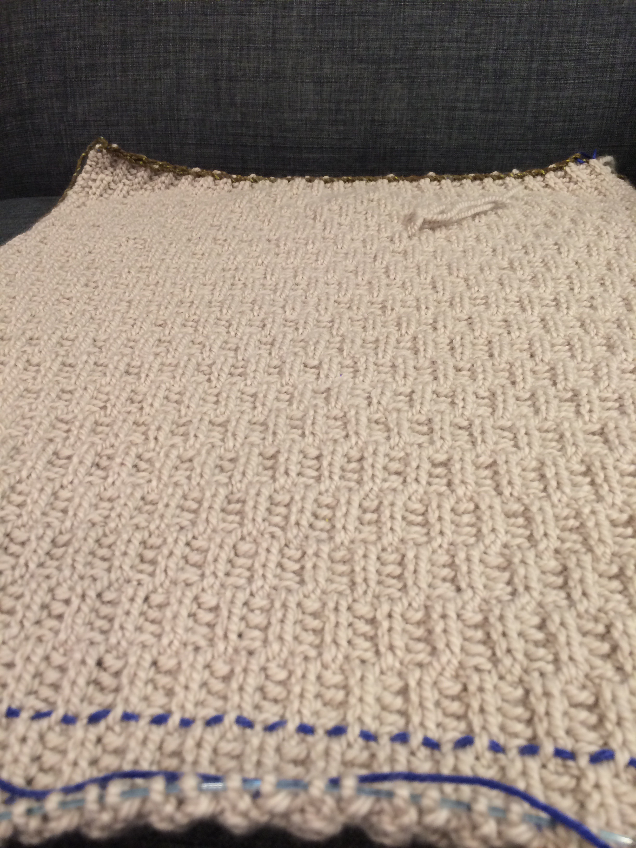 After getting distracted by my sweet daughter batting her super long eyelashes at me and asking for a new blankie, I finally wrapped up the first panel of the cowl.