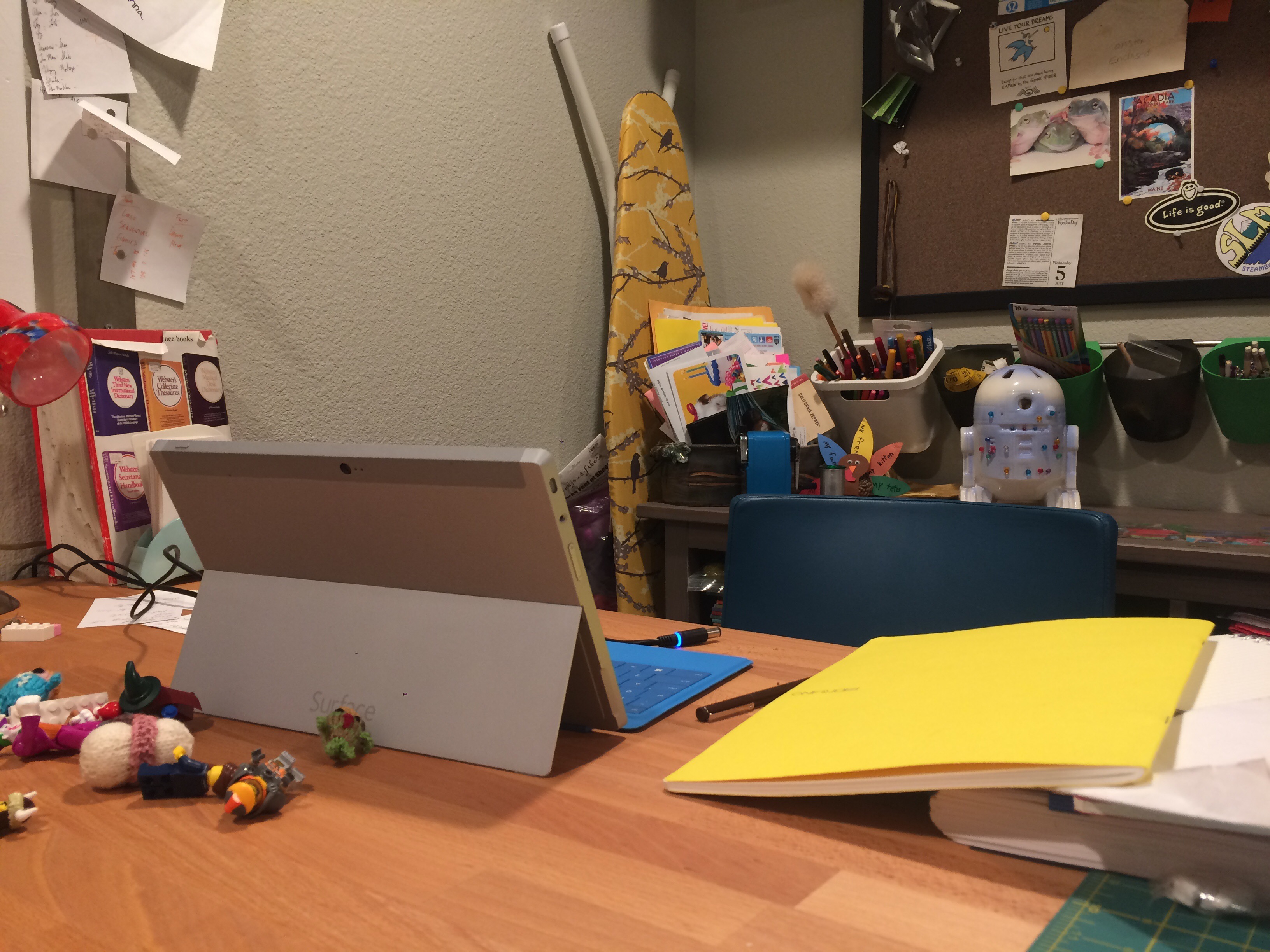 I write in a closet. It’s a cozy place with everything I need to create my stories. There is a Microsoft Surface with a blue keyboard and a mouse, because I can’t figure out how to use the trackpad on that thing. There’s a meandering path to get there and inevitably I find myself distracted by work, husband, child, and friends when I’m on my way to write. Even when I carve out time to visit my writing closet the way is often blocked by obligations.