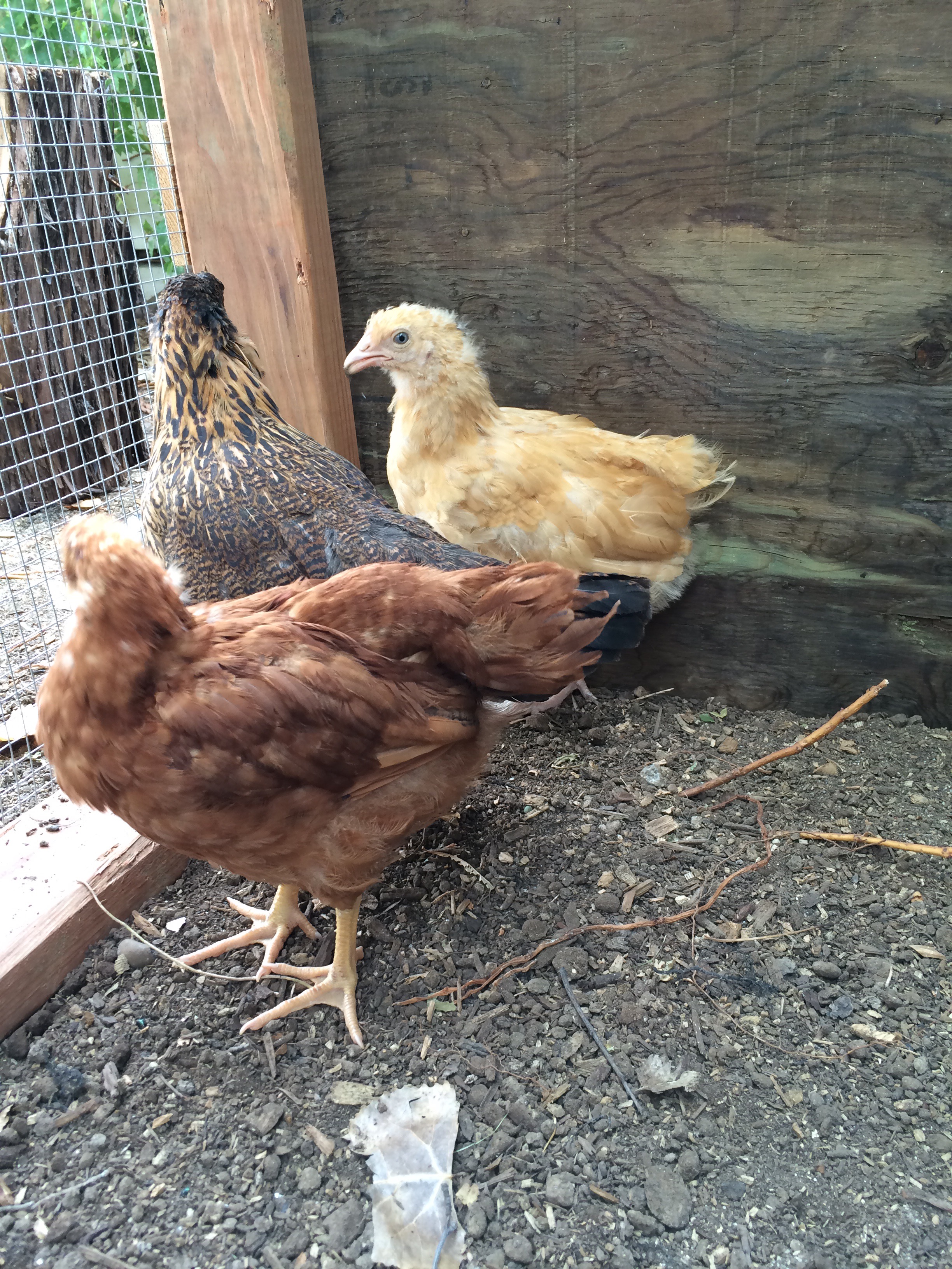 The Afthead family got some chickens. After the rough experiment fostering kittens last year we left the mammal group of the animal kingdom in favor of the bird group. Meet Buffy, Rosie and Hope.