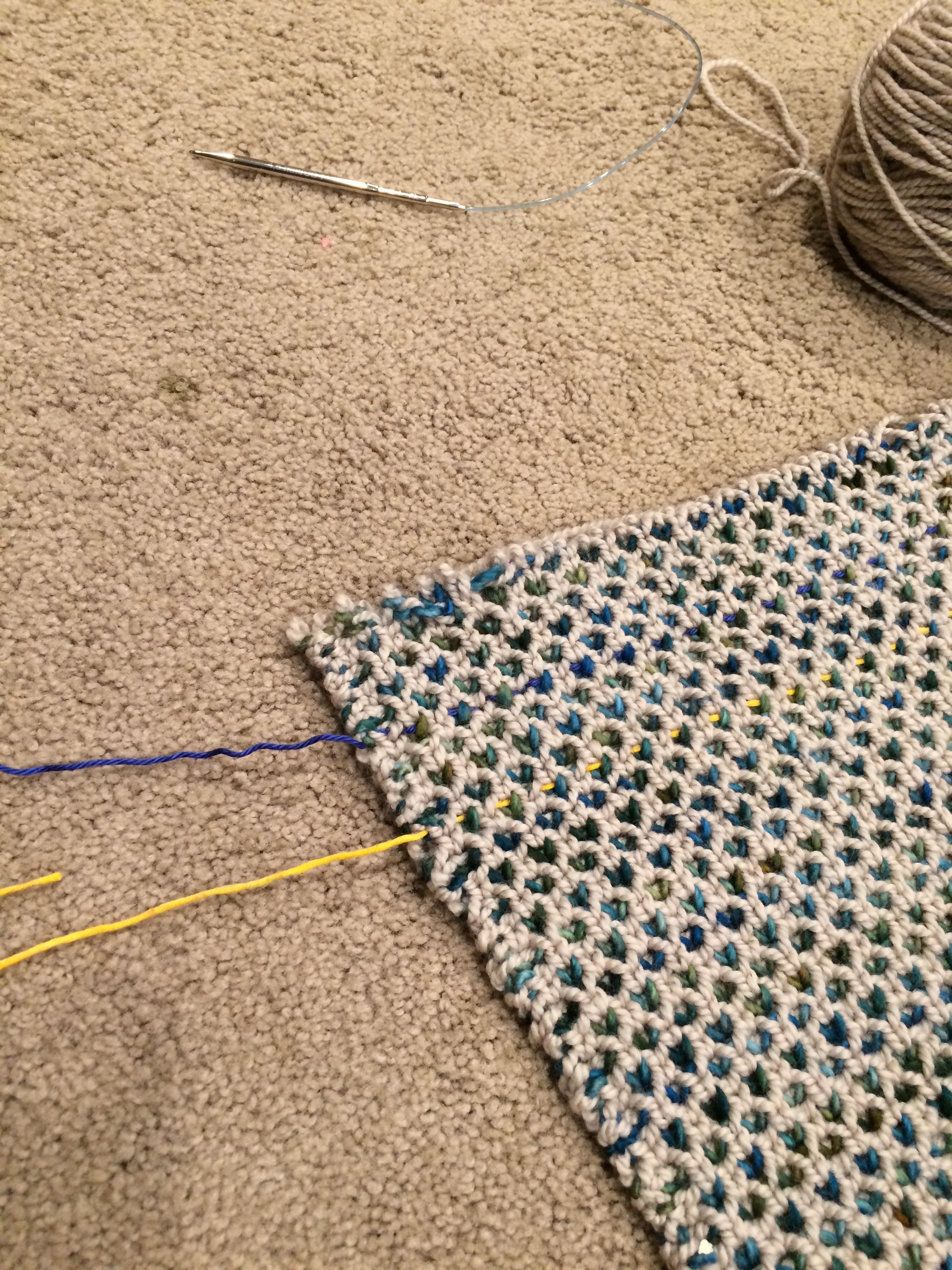 This week was full of problems at work. Anticipated problems. Surprise problems. Big and little problems. I was looking forward to the distraction of spending Friday night watching Grey’s Anatomy and getting a few rows knit. Just about the time the whole Alex Karev thing blew up (Future me – I’m not really sure what the Alex Karev thing was all about, but it apparently drew my attention away from my stitches) something felt funny in my knitting.