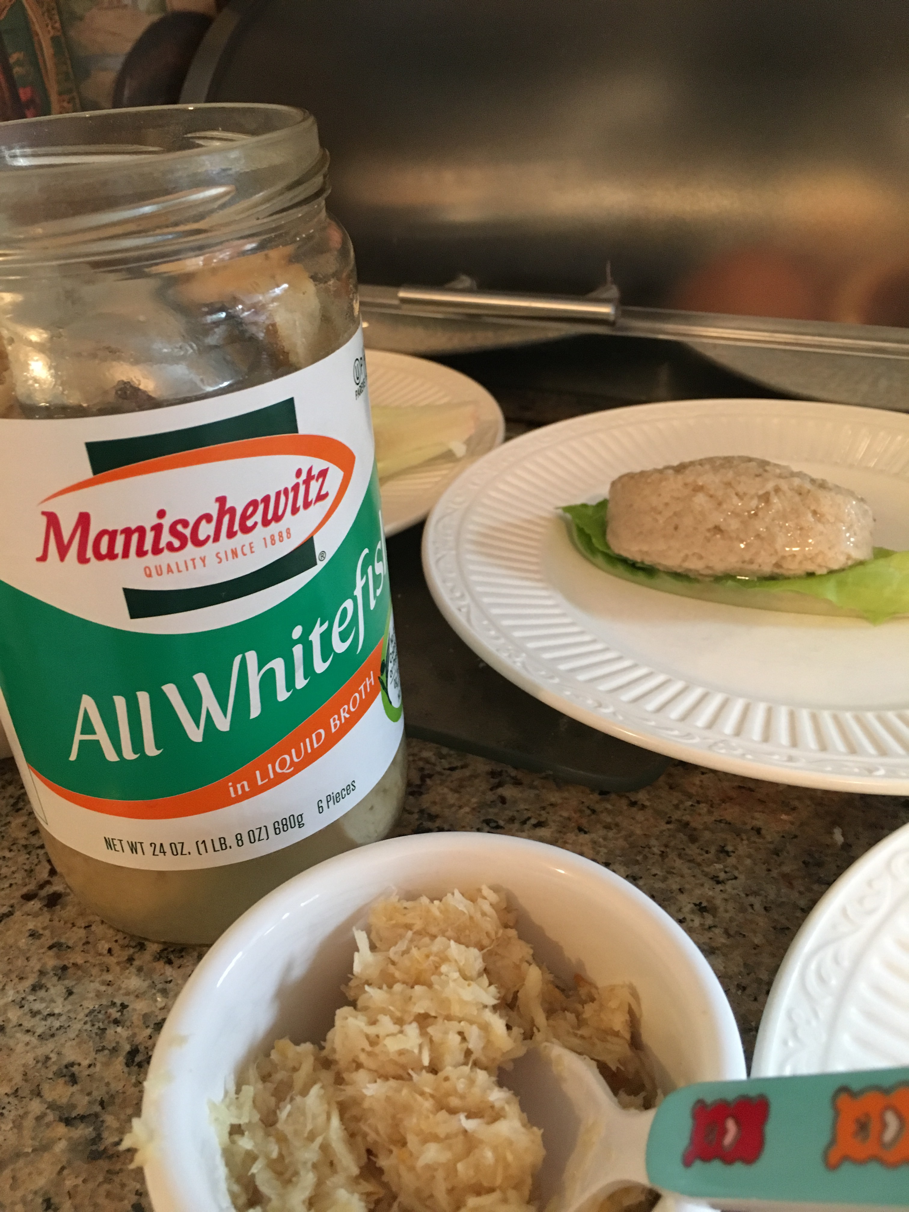 This life we live, it’s filled with scary slimy fish isn’t it?  Things we reject without a thought or a consideration for being different and gross, and really they might be different and gross to us even once fully understood and experienced.  Things we threaten our children with because you’ve got to make them behave in the supermarket somehow.  Every year at Passover I think my lesson is one of overcoming the fear of the unknown, different, and strange and while not embracing it – and certainly not enjoying it – at least learning to tolerate.  For my husband’s Jewish family and their ancestors more tolerance would have changed history.  And really, isn’t that an acceptable lesson?  Maybe we can’t embrace each other and all join hands in unity, but a little tolerance – even if it requires a big glass of water – goes a long way in this world.