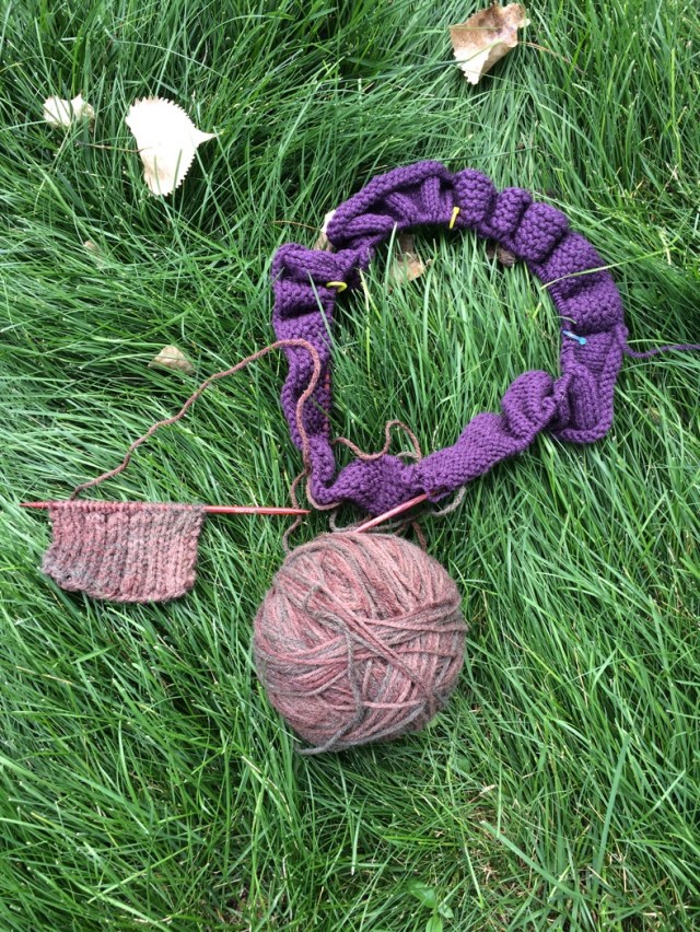 Most preppers would stop there. Yarn stored in three discreet locations with the big quantities hidden away for protection, but not Johanna. No. Hidden in the storage shelving under the stairs lurks two more large Rubbermaid containers. These hold the auction yarn. Yarn that was purchased for a tenth of its value, and while it might have limited use as yarn today – certainly it won’t smell like cigarette smoke anymore someday – everyone knows that aliens hate nicotine, so when the invasion comes she’ll be ready with jewel toned garments which will repel even the biggest eyed anal probe wielding creatures from another planet. One can never be too prepared.