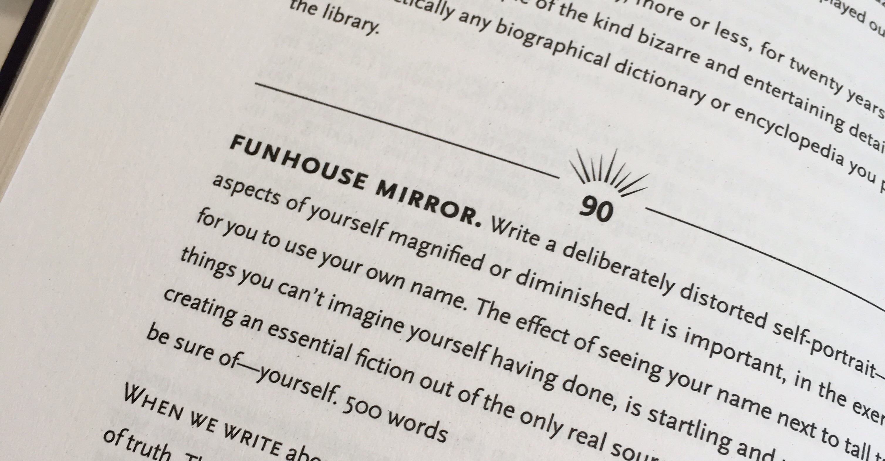 Ah, this writing class I’m taking… It’s a treasure trove of reading and writing enlightenment. The homework for our last class was titled Funhouse Mirror and again was from The 3 a.m. Epiphany: write a caricature of some aspect of yourself. Blow it up. Take it to the extreme.